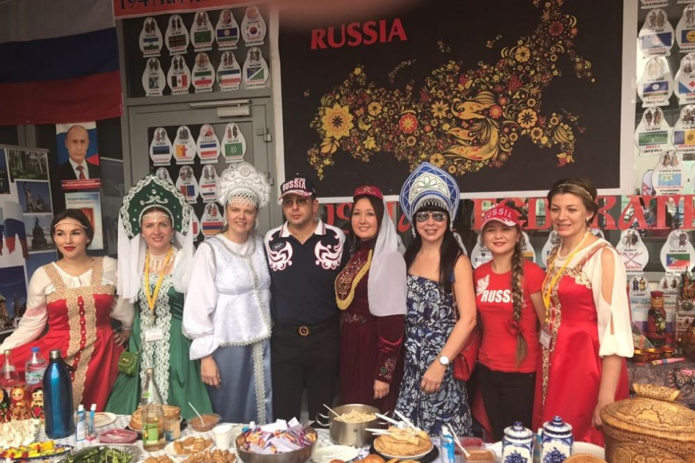 This year, members of the Rossiyanka Community also took an active part in organizing the Russian stand. The Russian stand conveyed the wealth and generosity of our country not only in the form of numerous traditional household items – samovar, matryoshkas, Khokhloma… Our hospitable hostesses – Russian moms and members of Rossiyanka cooked the most delicious dishes of Russian cuisine – homemade pickles and salads, fresh pastries… Guests of the Russian (and there were a lot of them) were welcomed by real Russian beauties in bright sarafans and kokoshniks.
